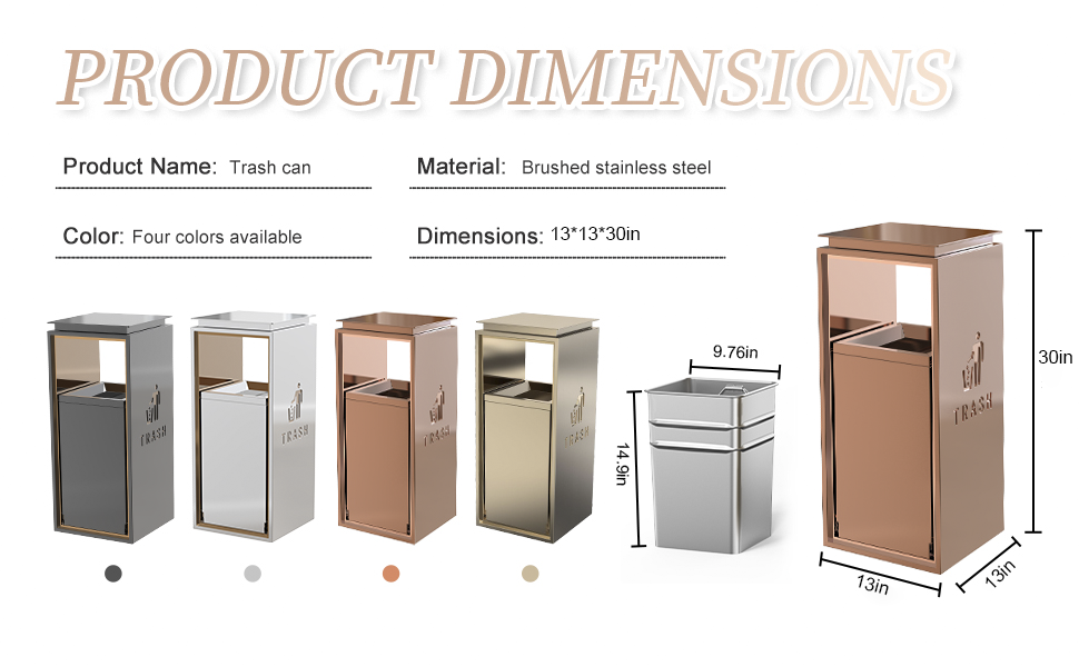 - Perfect for Indoor and Outdoor Covered Areas – Sized at 13"x13"x30", this modern black trash can is ideal for offices, hotels, conference halls, and covered outdoor spaces seeking a clean, upscale appearance
