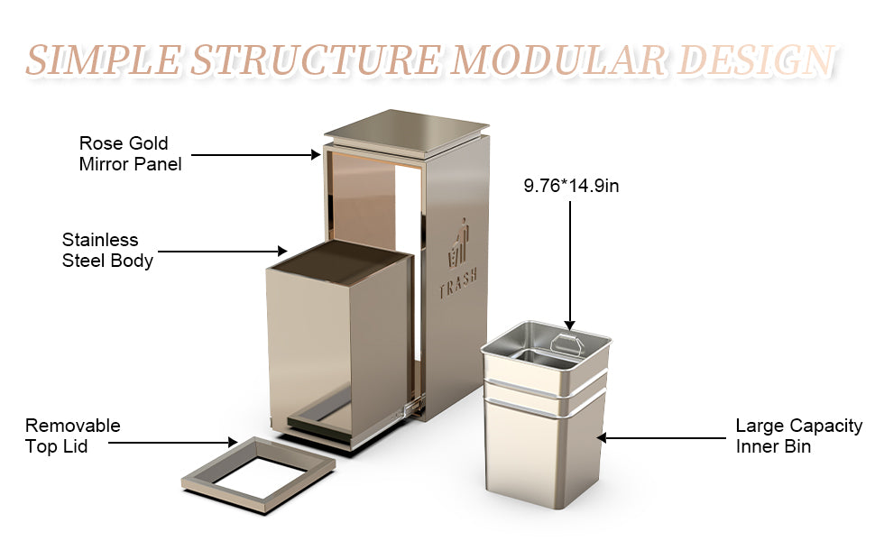 - Removable Heavy-Duty Inner Bin for Easy Maintenance – Features a sturdy metal inner bin with smooth pull-out design, ensuring effortless trash removal and easy cleaning without spills or mess.