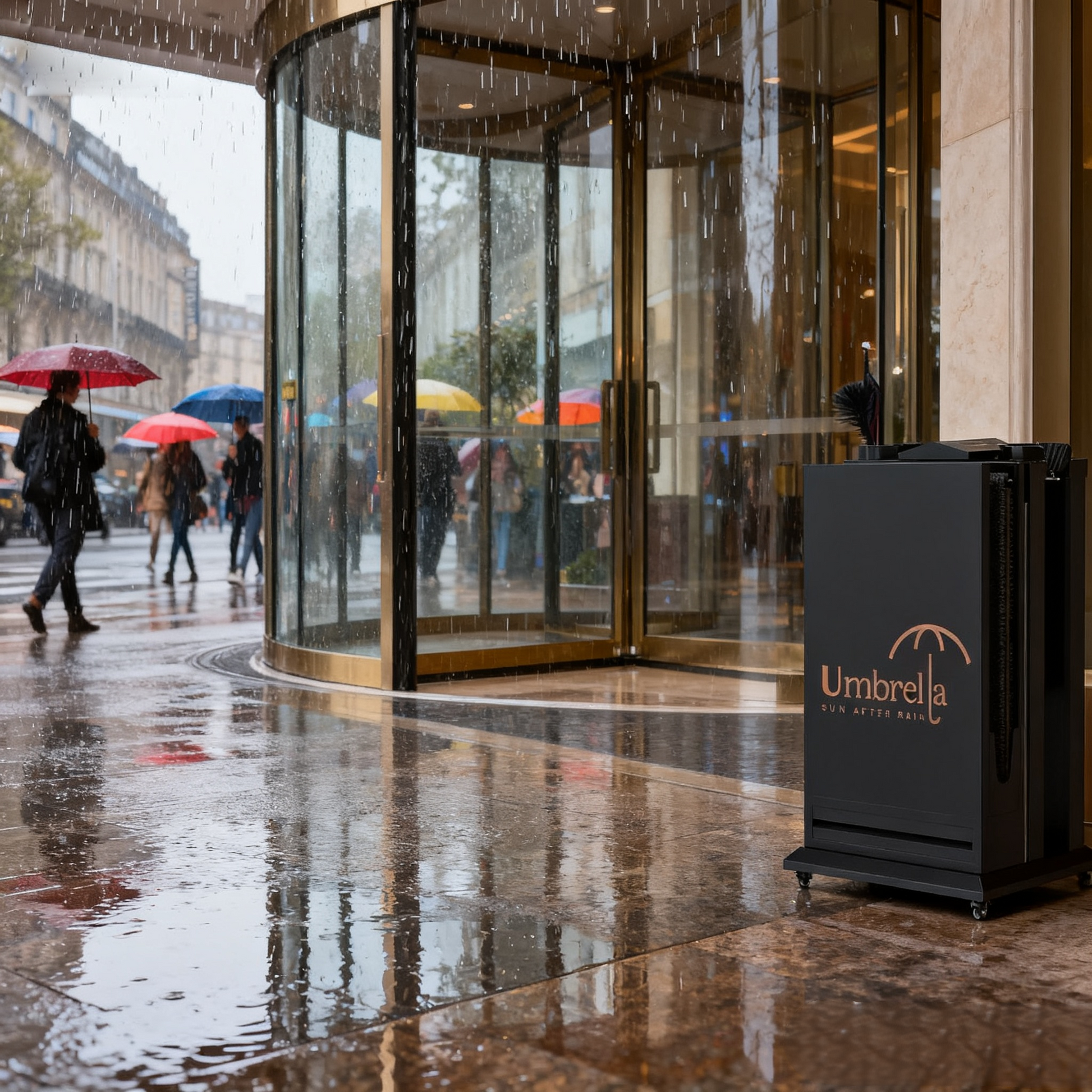 Traditional umbrella stands create messy, unprofessional entrances. Our umbrella plastic bag dispenser ensures clean, organized facilities.